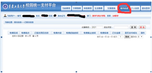 根据提示完成相关信息的填报(姓名、学号、学院、 班级、年级、手机号码、大一英语任课老师等)并完成报名缴费手续。