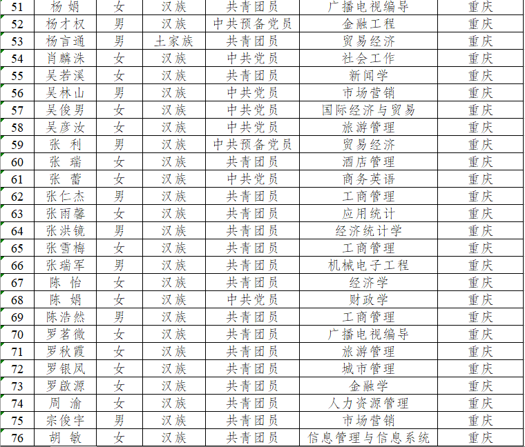 公示时间:6月14日—6月16日。公示期间如有异议,请将意见反馈至校团委。联系人:王微,联系电话:62769004,邮箱:xtw@ctbu.edu.cn。