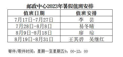 为更好地服务全校师生,保障暑假期间学校相关工作顺利开展,党政办公室每天均安排值班人员,负责学校校章、党委印章、法人印章、学校合同章、党政办公室印章等用印,学校介绍信开具,公文签发审核,会议室申请及使用等工作,请需求单位或师生按规定流程履行签批手续,其他未尽事宜,请与值班老师联系。