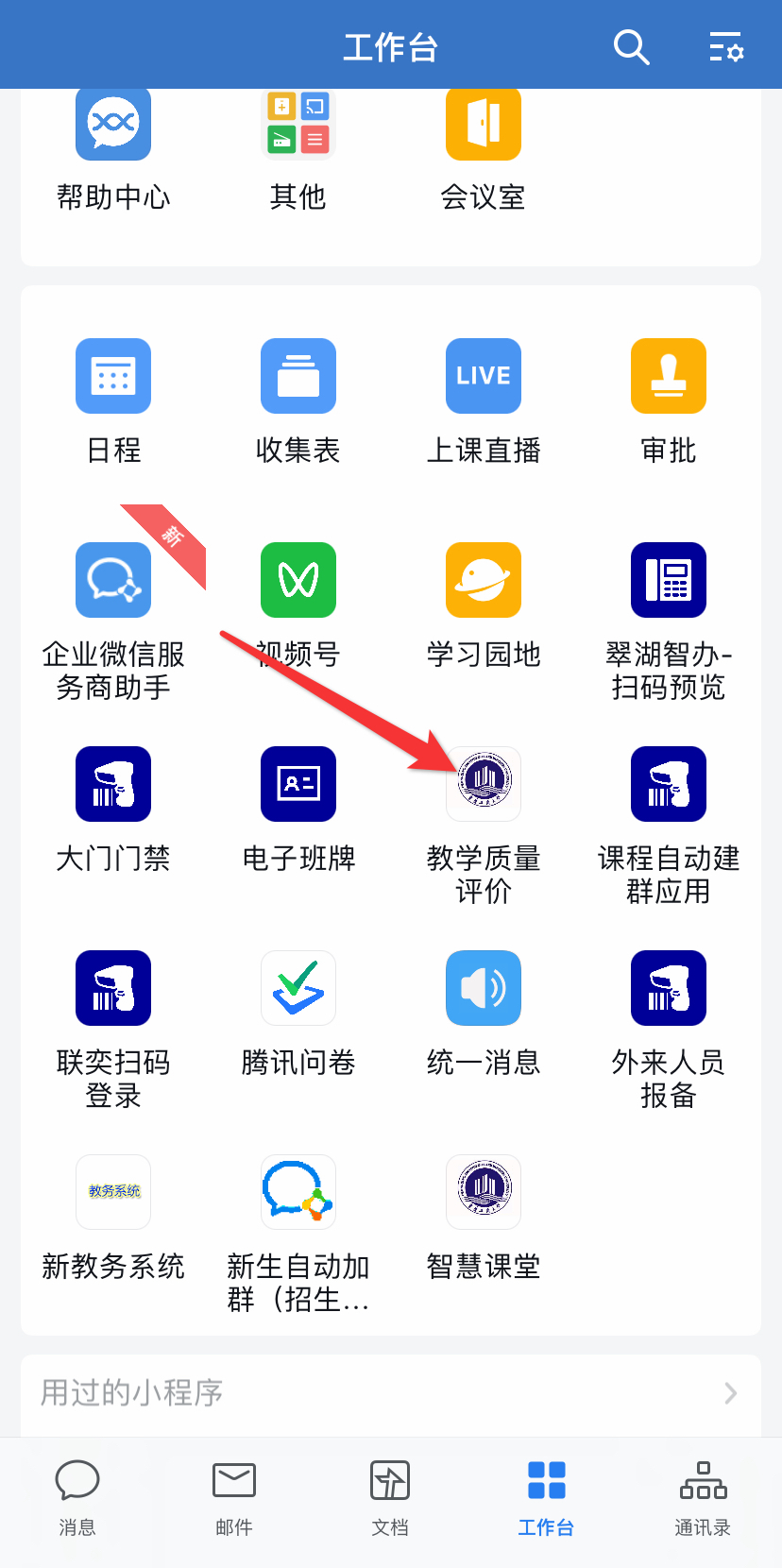 为了提高金年会本科教学质量监督与评估工作信息化水平,经过运行调试,金年会教学质量评价系统(手机端)部分功能已于近日上线试运行。学校中层干部即日起可通过“企业微信——工作台”登录教学质量评价系统,在线填写提交听课评价表,原纸质《领导干部听课手册》方式不再使用。具体操作方法详见附件《教学质量评价系统操作指南(领导干部听课)》。