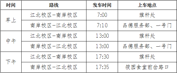 按照学校教学计划和老师们实际工作需要,现定于从2020年6月22日起调整校区交通车发车时间为: