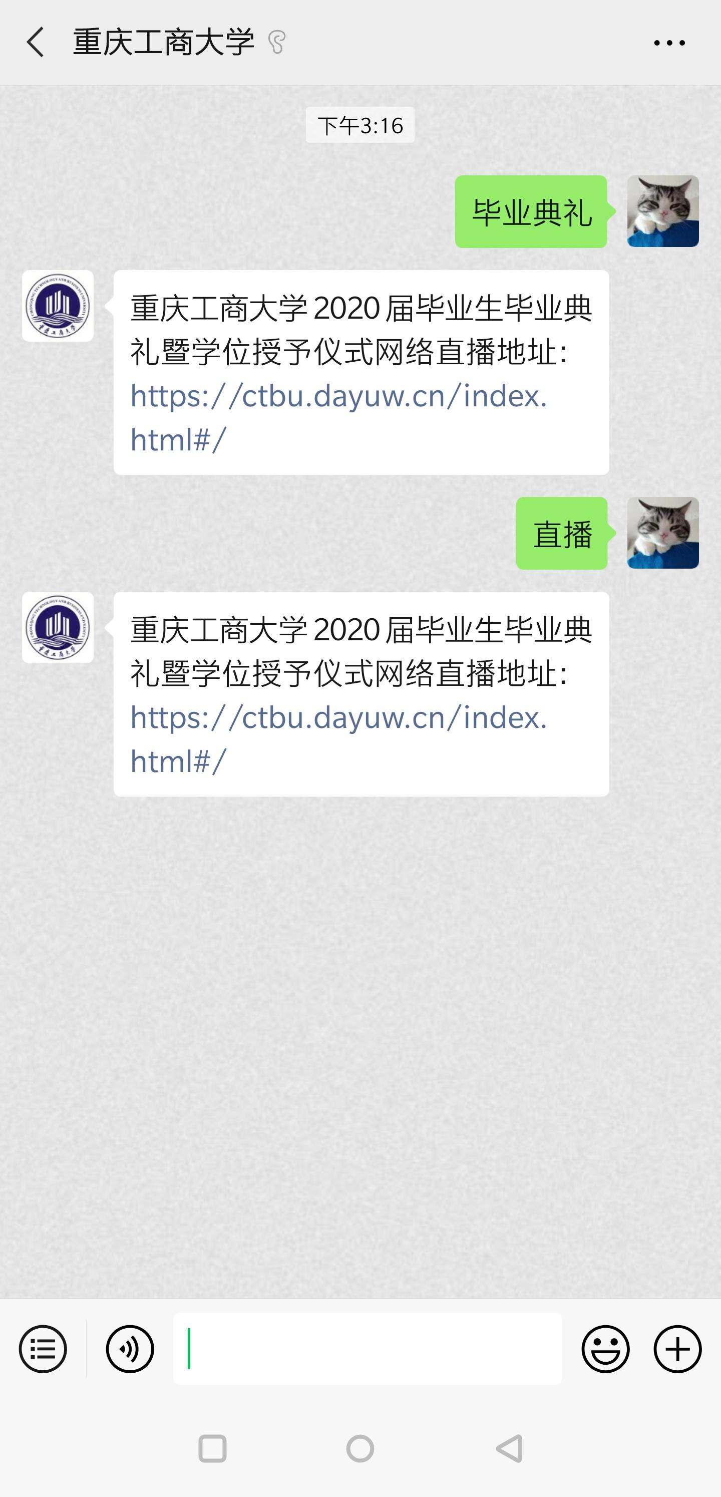 方式二:微信扫码或搜索关注公众号“JINNIAN金年会”。在后台回复关键词“毕业典礼”或“直播”,获取直播二维码,扫码进入毕业典礼直播。