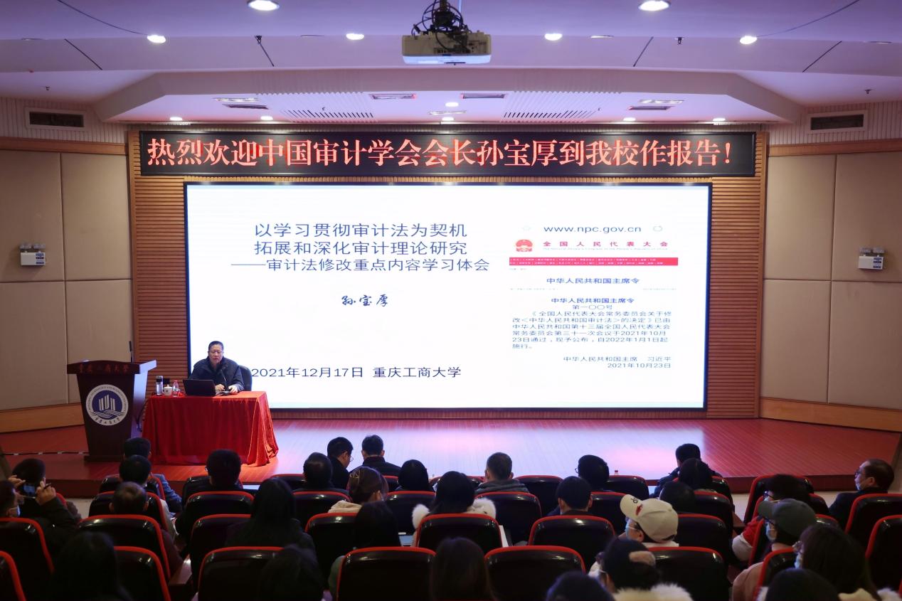 孙宝厚作了题为《以学习贯彻审计法为契机,拓展和深化审计理论研究——审计法修改重点内容学习体会》。他在报告中指出,审计是党和国家监督体系的重要组成部分,在维护国家财政经济秩序、提高财政资金使用效益、促进廉政建设、保障经济社会健康发展等方面发挥着重要作用。他介绍了《审计法》制定、修改及学习宣传贯彻落实的重要意义。他就《审计法》的修改背景和修改重点内容进行了深入解读。他将本次审计法的修改总体概括为“一个重大修改、一个继续关注、三个重大拓展、两个相应完善”,具体从坚持党对审计工作的领导,审计监督与人大监督相贯通,拓展审计监督对象范围和职责,履行审计职责所需要的权限优化,强化审计报告及审计成果运用,拓展保障和规范审计行为的规定,审计程序得到健全和完善七个方面进行了详细讲解。