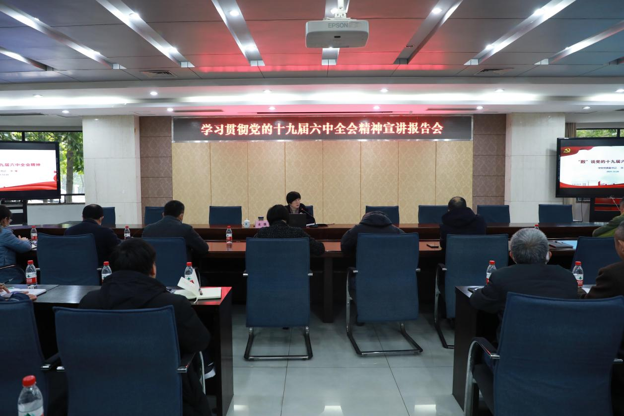 12月20日下午,学校党委副书记宋豫在厚德楼2017会议室为师生党员集中宣讲党的十九届六中全会精神。