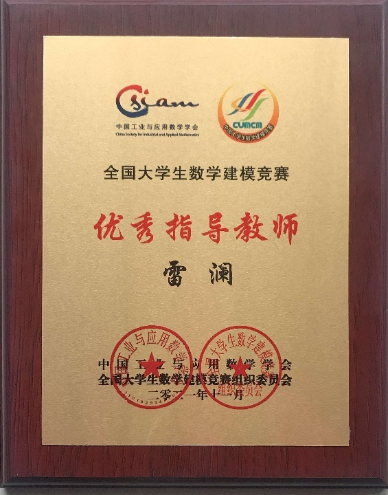 近日,庆祝全国大学生数学建模竞赛30周年暨2021“高教社杯”全国大学生数学建模竞赛颁奖典礼在线举行,金年会数学与统计学院雷澜副教授荣获该竞赛的全国优秀指导教师称号。数学建模竞赛全国优秀指导教师每十年评选一次,本次重庆市各高校共有5位教师获评,金年会数学与统计学院雷澜副教授位列其中。这是继2012年袁德美教授荣获“数学建模竞赛20周年全国优秀教练”称号之后,数学与统计学院教师又一次获此殊荣。