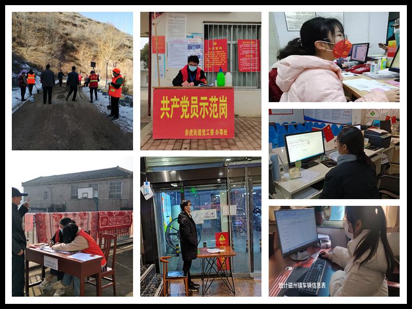 机械工程学院孟子怡、付嘉乐,在家乡疫情防控卡点做志愿者,对来往车辆和行人进行体温检测,进行信息登记。张兴端、何雨豪、张玉、代航航和杜宇等同学,在社区积极参加宣传引导、数据排查、入户登记、卡口执勤等工作。