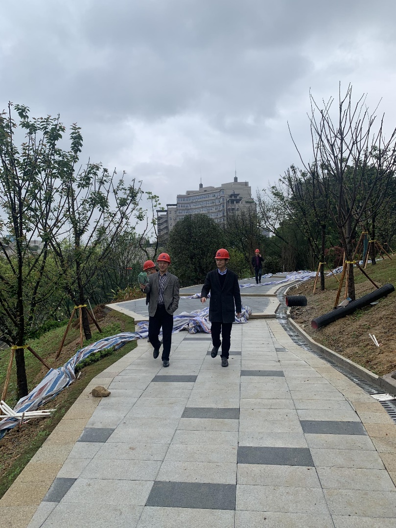 4月1日上午,校长孙芳城在基建处、施工单位、监理单位相关同志陪同下检查了学生活动中心及环境景观工程的建设工作。