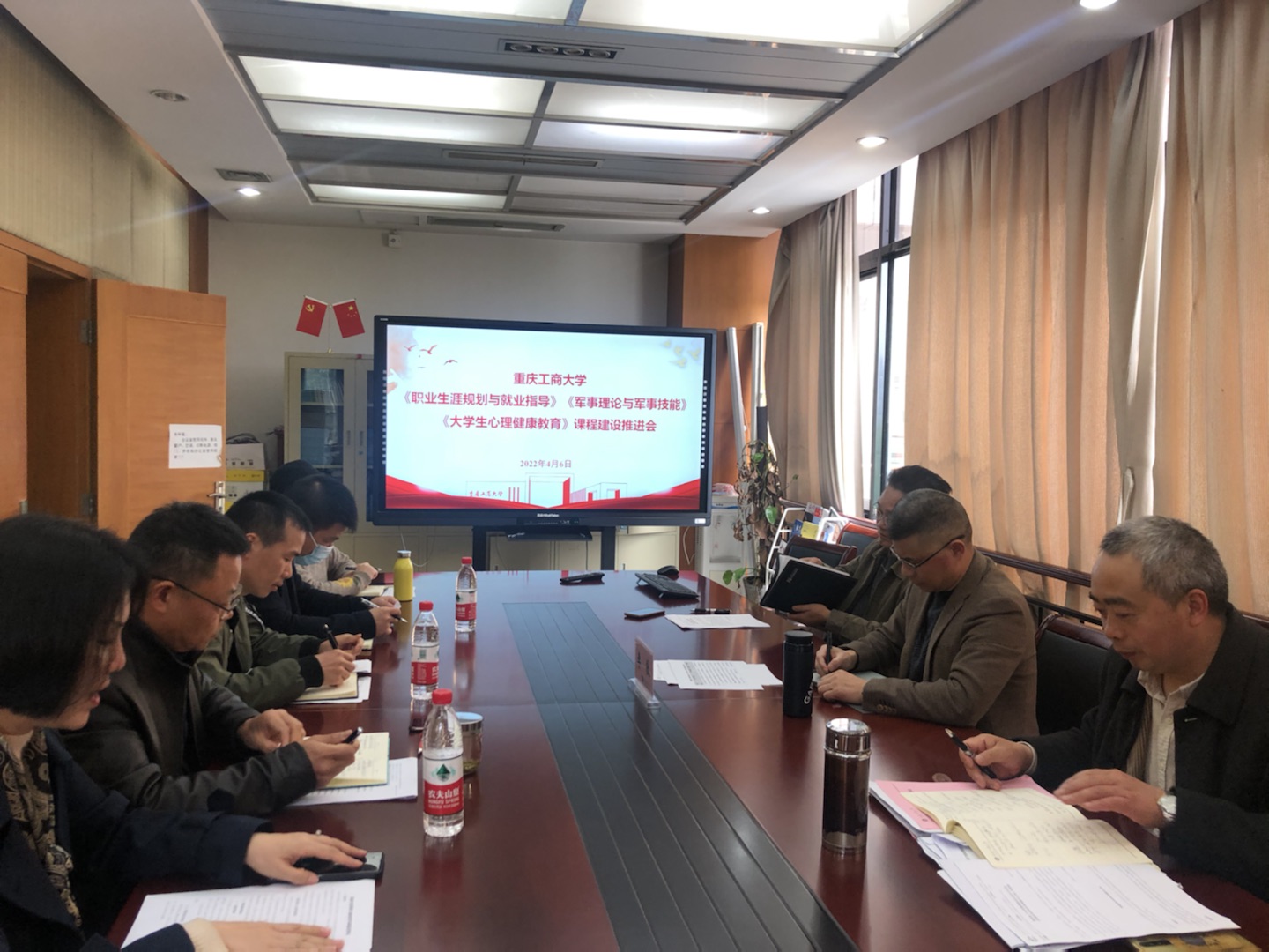 4月6日下午,学校在厚德楼2002会议室召开《职业生涯规划与就业指导》《军事理论与军事技能》和《大学生心理健康教育》等就业教育、国防教育和心理教育课程建设推进会。副校长李敬,学生处处长申卫东,学生处副处长陈龙国、张朝毅,招生就业处副处长王静,国防教研室、就业教研室、心理教研室负责人,教务处处长骆东奇、教务处副处长韦晓兰,教务处研究室相关老师参加会议。会议由骆东奇主持。