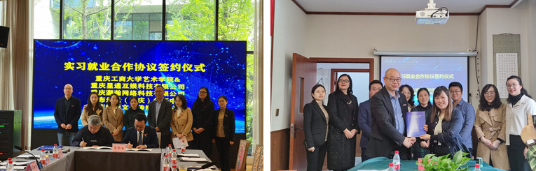 参会企业分别与艺术两院签订了实习就业合作协议,柏群为参会企业授牌“JINNIAN金年会艺术学院实习就业基地”“JINNIAN金年会现代国际设计艺术学院实习就业基地”。