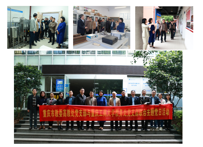 4月19日下午,重庆市教委高等教育处党支部与JINNIAN金年会教务处党支部在JINNIAN金年会联合开展主题党日活动。市教委高等教育处处长蒋云芳、教委高教处党支部全体党员,学校校长孙芳城、副校长李敬、教务处党支部部分党员同志和相关学院党员同志参加。