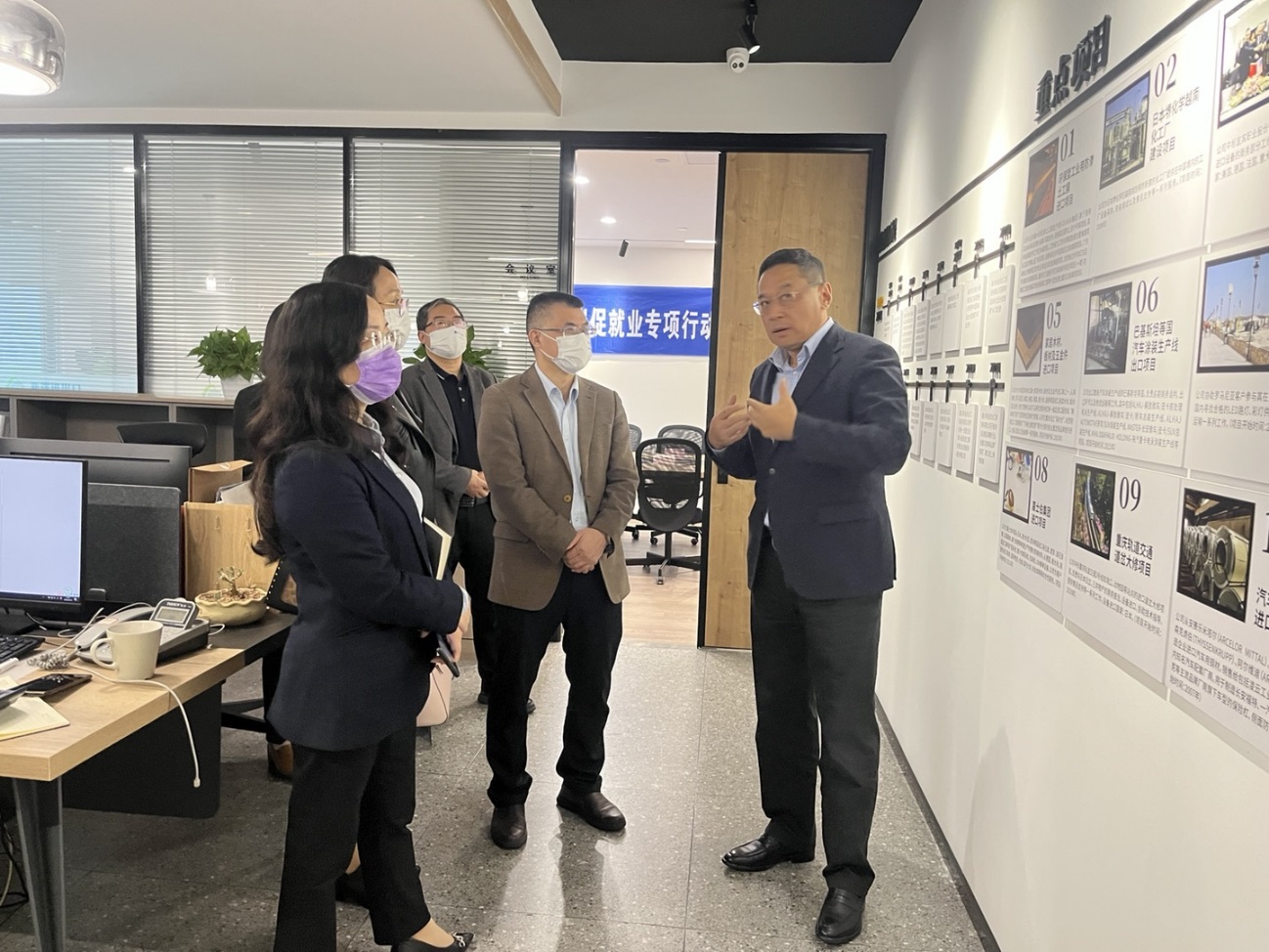 4月21日,副校长柏群带队前往重庆市两江新区管委会调研并开展“访企拓岗”促就业专项工作,国际商学院学院党委书记陈新力、副院长陈昌盛等陪同走访调研。两江水土投资公司党委委员、副总经理杨波、两江水土投资公司党委委员、副总经理周建国、两江水土投资公司产促部部长陈琳、 重庆华邦制药有限公司副总经理李思平、华数重庆智能机器人研究院常务副总经理王旭丽、大地生物产业园发展有限公司常务总经理彭汉、重庆京东方显示技术有限公司人事负责人任小河、重庆药友制药北碚分公司人力资源部经理李白桀参加了本次座谈会。