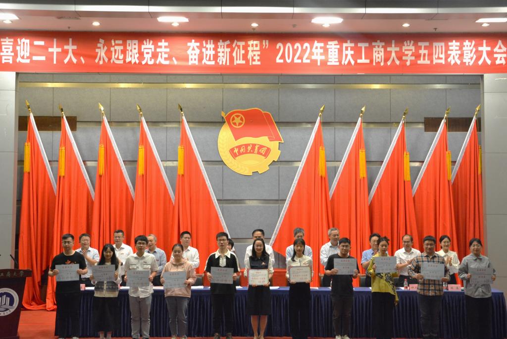 校团委书记吴佑波宣读《共青团JINNIAN金年会委员会关于表彰2021-2022学年先进集体和个人的决定》。领导和嘉宾为获奖集体和个人代表颁奖。五四红旗团委代表国际商学院分团委书记冯诗淇老师,共青团标兵艺术学院李中旭作了交流发言。随后,全场师生齐唱团歌,五四表彰大会圆满结束。