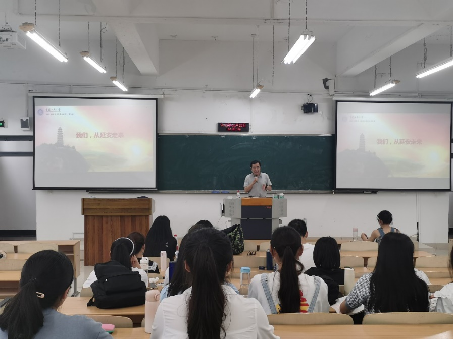 赵骅以重庆红岩精神引题,回顾革命英雄事迹,为同学们讲授延安精神,长征精神以及抗战精神,使同学们全面了解到党的发展历程和精神内核。