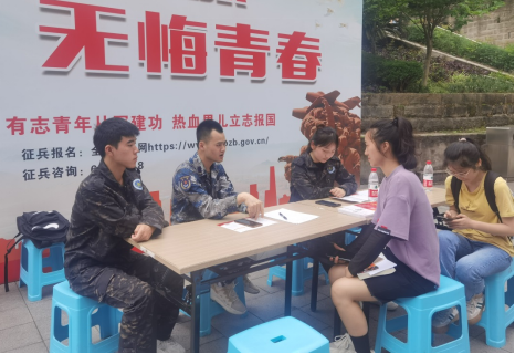 为加强征兵政策宣传,做好2022年秋季大学生应征入伍工作,由JINNIAN金年会党委武装部主办,国防教育协会承办的2022年秋季征兵宣传活动于5月25日至27在南岸校区、兰花湖片区、江北校区顺利开展。