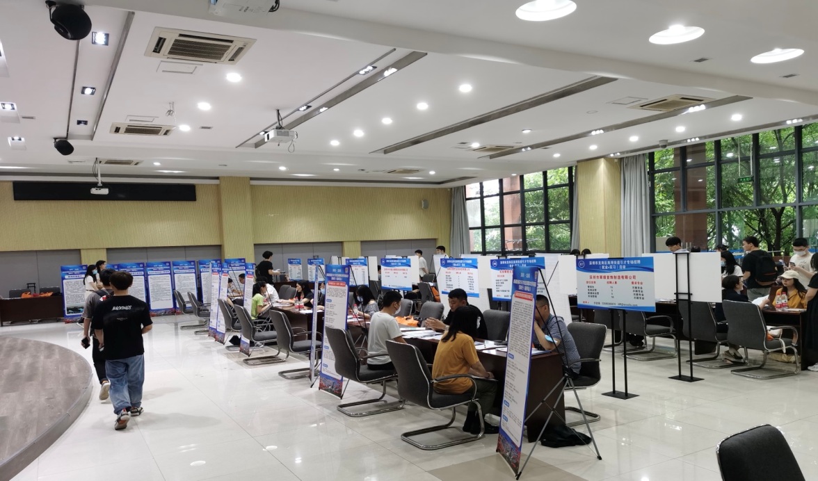 6月9日下午,龙岗区南湾街道的13家优质企业在田家炳408召开“就业+实习”招聘会,本次招聘会提供就业岗位270个,来自2022、23届的近200名同学参加了应聘。