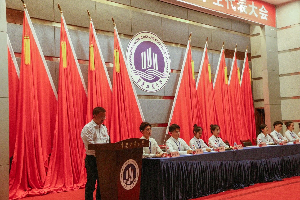 校学生会主席团候选人余东放同学代表JINNIAN金年会第四届学生委员会作题为《青春向党启征程砥砺奋进再扬帆为建设商工融合、多科协同,全国知名的财经类应用研究型大学谱写青春篇章》的工作报告。报告总结回顾了学生会一年来的工作成果与不足之处,展望了对未来工作的构想,坚定了学生会持续改革、开拓创新的发展理念。