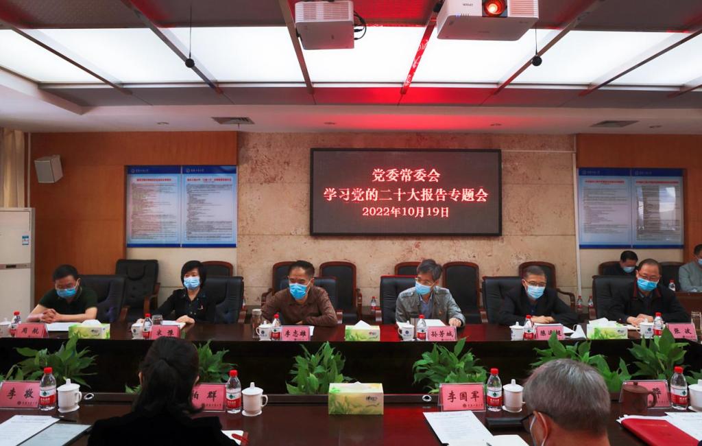 按照学校学习宣传贯彻党的二十大精神工作安排。10月19日上午,学校党委常委会召开学习习近平总书记在中国共产党第二十次全国代表大会上的报告精神专题会。会议由党委书记李志雄主持。