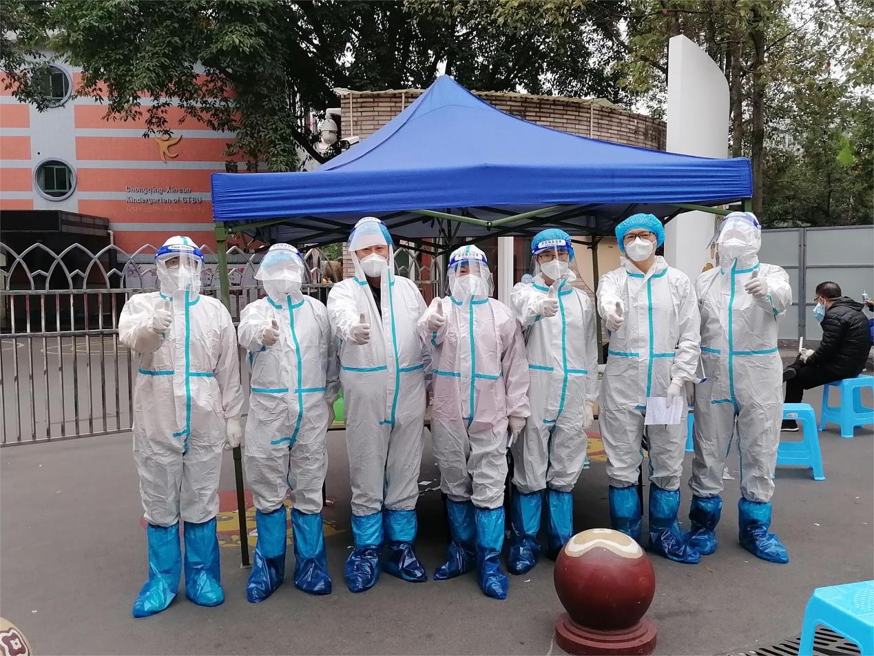 应急预案随即启动,各组工作人员迅疾到岗,指挥中心彻夜通明,从校领导到全体教职工从速进入工作状态。全校一盘棋,上下一条心,全校师生共同面临这场 “新的大考”。为保证全校师生安全,全体校领导分片包干、靠前指挥,校党委发出动员令:战“疫”没有旁观者,人人都是战斗员。转发《中共重庆市委教育工作委员会致全市教育系统党员干部的倡议书》,号召全体党员干部积极响应倡议,将学习践行党的二十大精神落实到疫情防控工作中,为坚决打赢中心城区疫情歼灭战作出贡献。校党委第一时间向各级党组织和广大党员干部发出志愿者集结令,号召各级党组织和广大党员干部,主动担当作为,带头做好表率。校防控办迅速发布《聚星成炬 共筑防线——致JINNIAN金年会全体师生员工的倡议书》,号召全体师生员工,以高度责任感和使命感始终保持“战斗”状态,积极投入各项工作,汇聚起重工商大人齐心抗疫、守望相助的坚强力量。广大党员干部、教职员工闻令而动、冲锋在前,289名教师志愿者迅速集结,开展核酸检测登记、家属区分餐、社区防疫等疫情防控工作。截至目前,已累计开展各项志愿服务586人次。