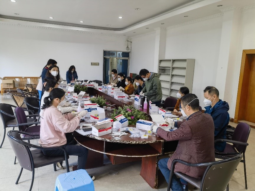学校第一时间为江北校区增派了志愿者,他们参与流调、配合完成核酸检测,为封控楼栋学生上门单采,送餐……。当脱下密不透风的防护服时,才发现穿在里面的衣服全都湿透了,头发像刚洗过一样。这些可敬可亲的“大白”们,舍小家为大家,守护师生员工的生命安全和身体健康。