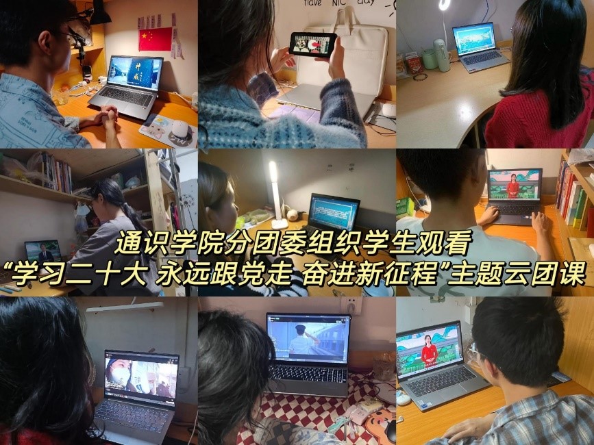 同学们积极适应变化,在配合疫情防控工作的同时规律作息、专注学习。通识学院组织各团支部观看“学习二十大 奋进新征程 永远跟党走”主题云团课,开展学习分享会、口罩绘画大赛等多样化的线上活动,丰富学生生活。师生互相关心、互相鼓励,温暖同行。