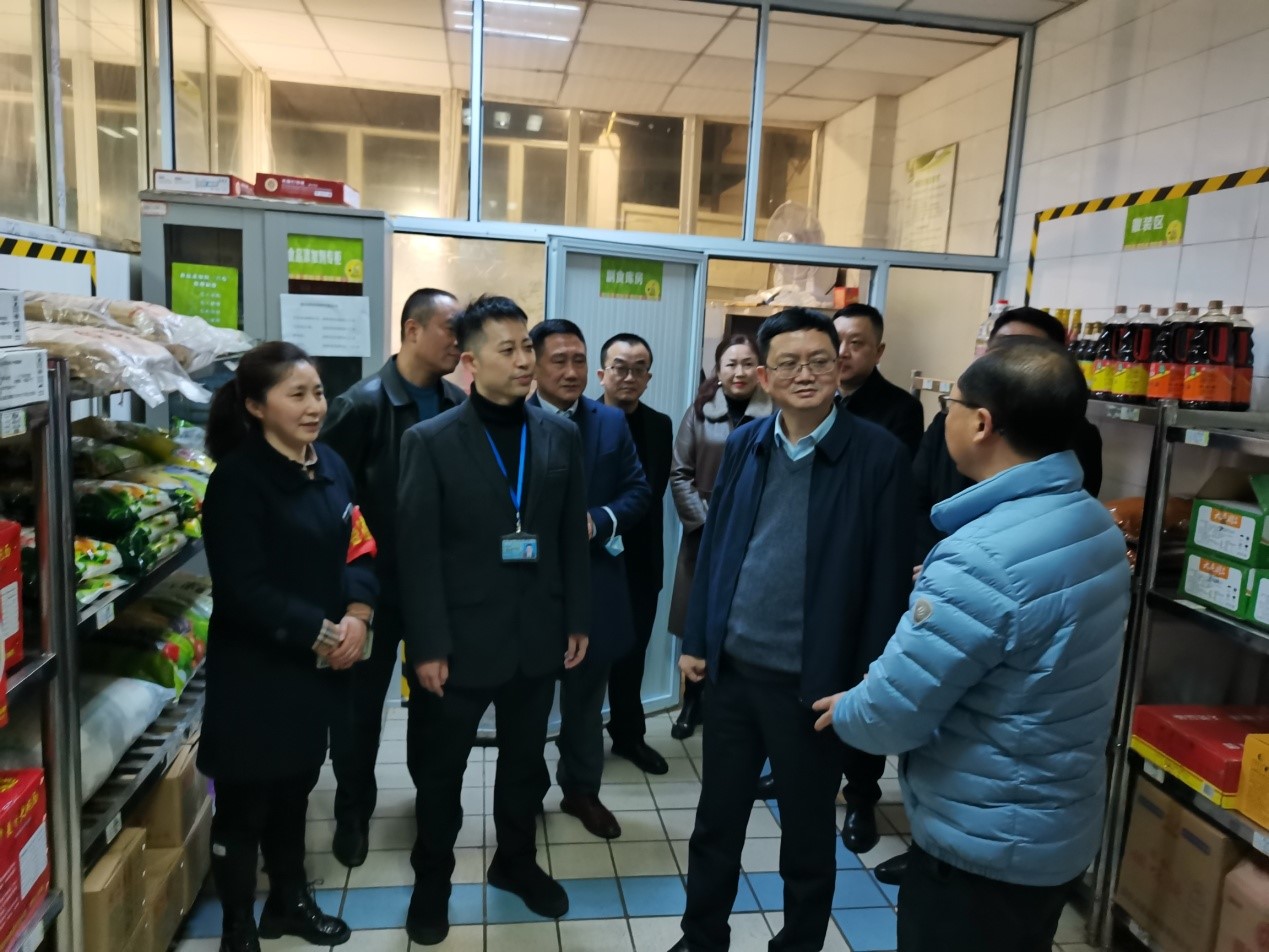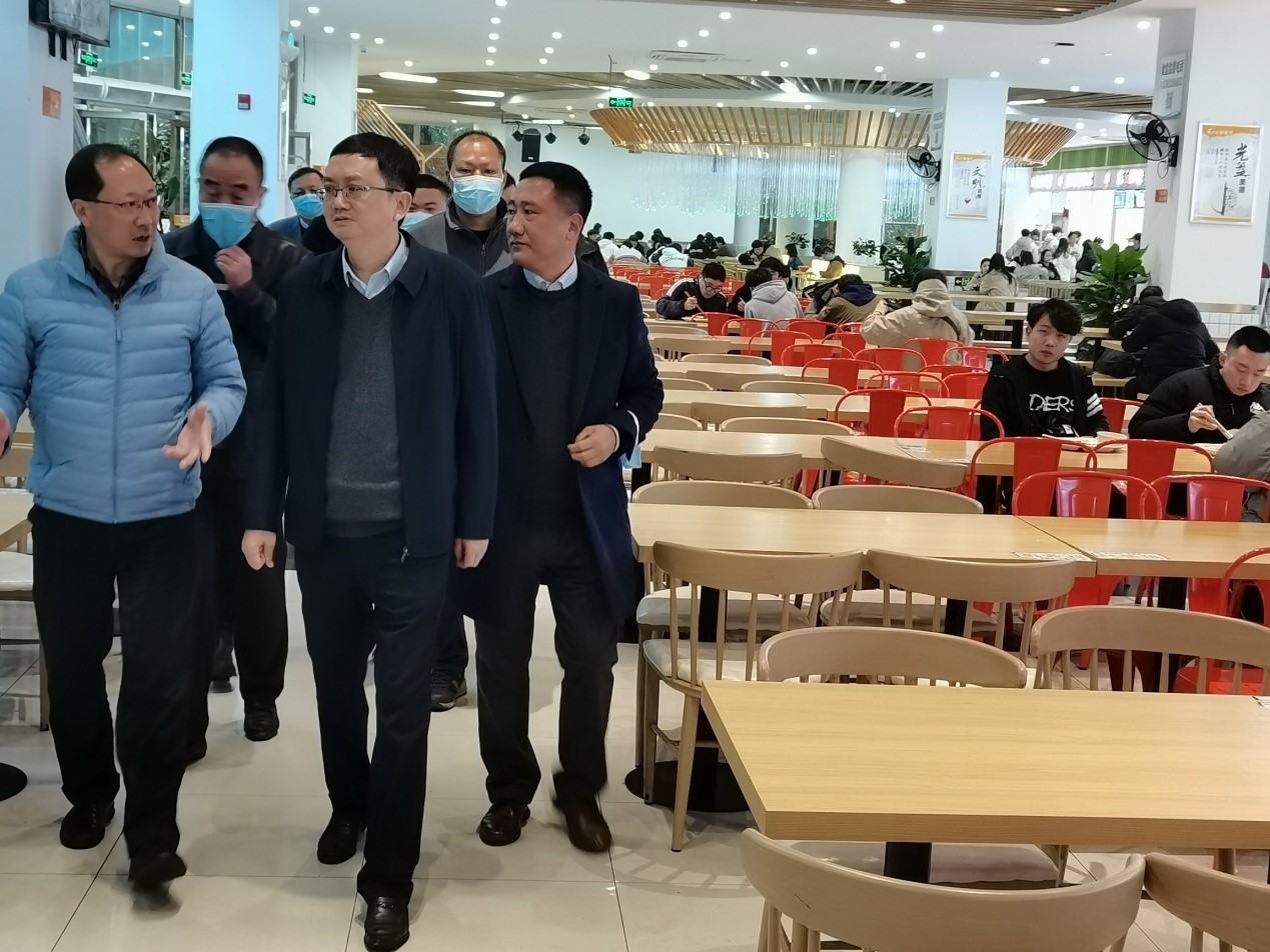 3月2日下午,南岸区副区长蒋文新带领区政府办公室、区教委、区市场监督管理局、海棠溪街道办事处负责人对金年会学生食堂食品安全工作进行实地考察调研。金年会党委常委、副校长张波,相关职能部门负责人陪同检查。