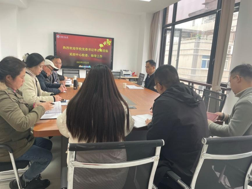 近日,学校党委书记李志雄到采招中心调研指导工作。调研工作会在厚德楼8001会议室召开,采招中心主任宋海雨、五级职员梁龙彬、以及采招中心全体教职工参加。