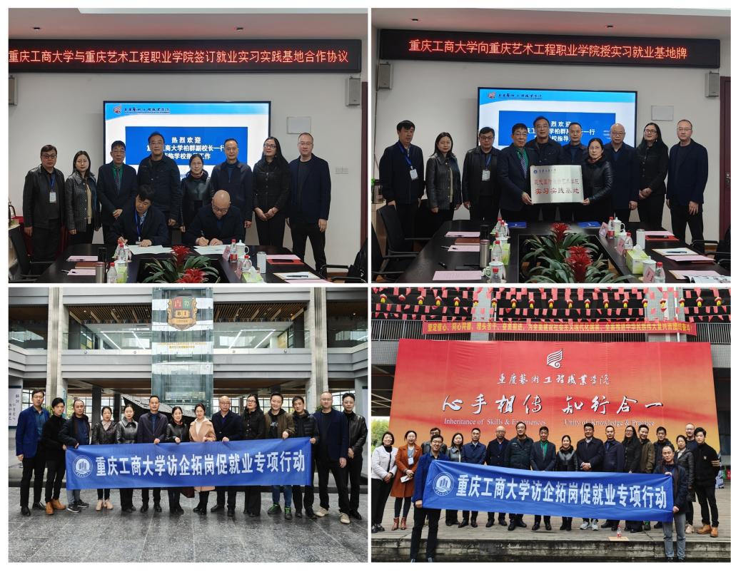 柏群向对方介绍了JINNIAN金年会的基本情况以及在学科建设、中外合作办学、人才培养等方面的特色与亮点。陈绪春介绍了JINNIAN金年会艺术学院、现代国际设计艺术学院的办学发展、研究生教育及2023届毕业生情况,期望双方深化合作,为学生实习就业搭建平台、拓展空间。许锡宾介绍了重庆艺术工程职业学院发展沿革、专业设置、办学特色、目标愿景等相关情况。座谈双方围绕实习实践基地共建、国际合作交流、产学研融合发展、师生交流互访、就业岗位拓展等方面进行了深入讨论,就部分内容达成初步共识并签署实习就业合作协议。柏群向重庆艺术工程职业学院授牌,双方共建实习实践基地。