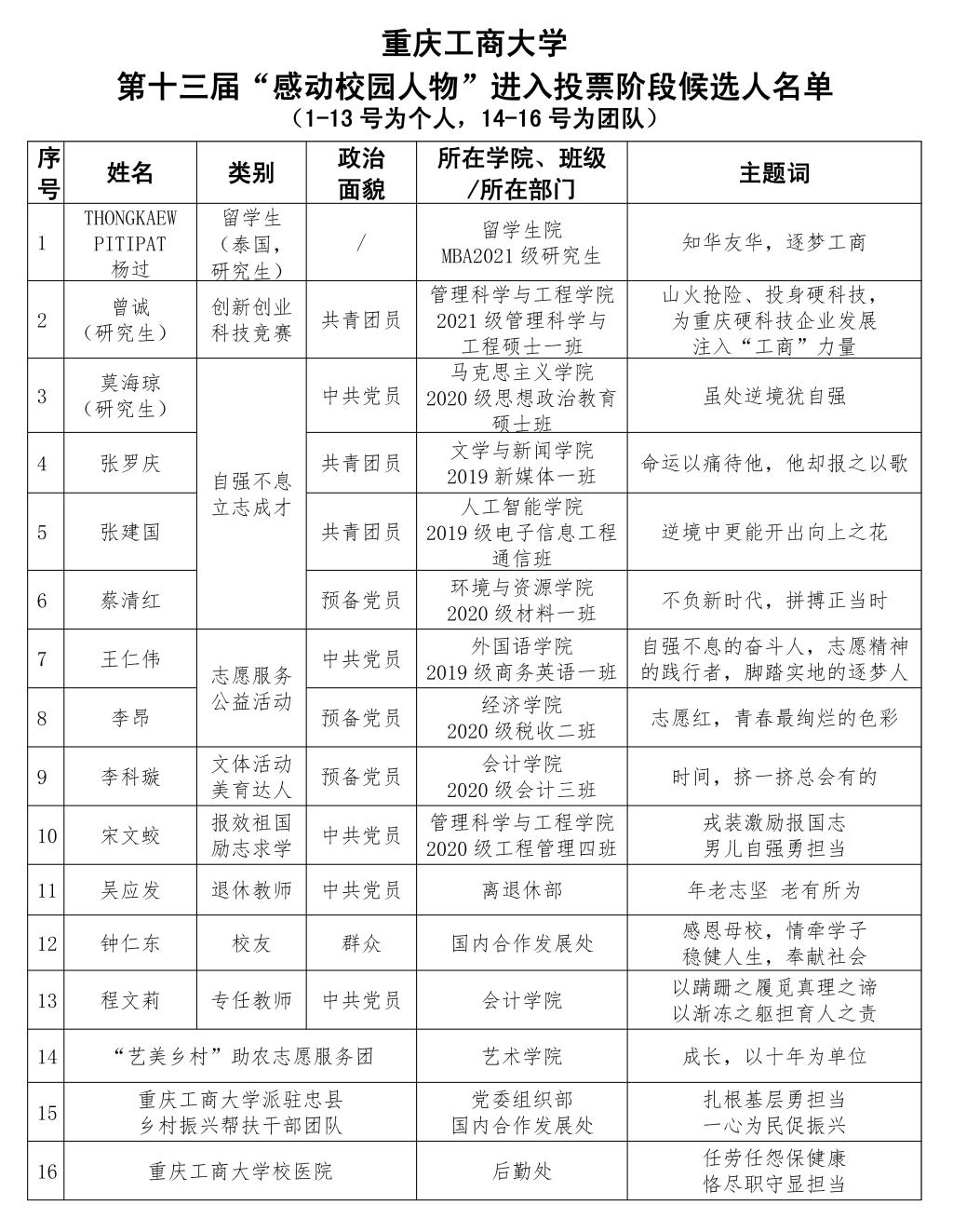 第一轮专家推荐会后,金年会第十三届“感动校园人物”评选活动将进入校内现场投票和网络投票的环节。深耕精作,选人育人,希望全校广大师生积极参与,为心目中的感动人物投上珍贵的一票,让温暖延续重工商大,用感人事迹激扬校园。