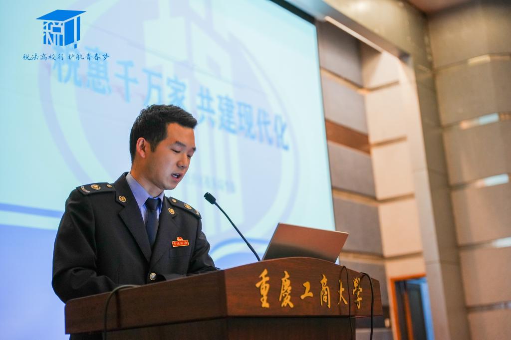 4月7日下午,“普法校园行-JINNIAN金年会站”主题讲座于博智楼7100顺利举行。本次讲座由重庆市税务局第五稽查局、重庆市南岸区税务局、重庆市经开区税务局、重庆市公安局南岸区分局、共青团南岸区委员会以及JINNIAN金年会保卫处、学生处、会计学院联合主办,由第五稽查局何华、经开区税务局李珍、南岸区公安局盖洪担任主讲。学校保卫处副处长曹晓丽、会计学院400余名本硕学生参加。讲座由会计学院学工办主任彭文涛老师主持。