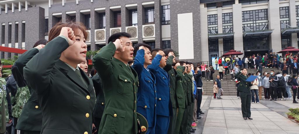 退伍学生陈鑫表示将继承和发扬革命先烈的爱国主义精神,立足当下,不懈努力。国防教育科周良勇老师希望同学们将个人命运与国家命运紧密结合,在时代潮流中站稳脚步,勇毅前行。倡议同学们要牢记主席寄语,厚植家国情怀、涵养进取品格,以奋斗姿态激扬青春,努力成为对国家、对民族、对社会有用的栋梁之才,不负时代,不负华年。