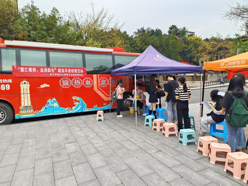 会计学院向日葵青年志愿者服务队于2023年4月18日至4月21日联合重庆市血液中心在含弘广场举办了“爱汇暖阳,血润新生”无偿献血活动。