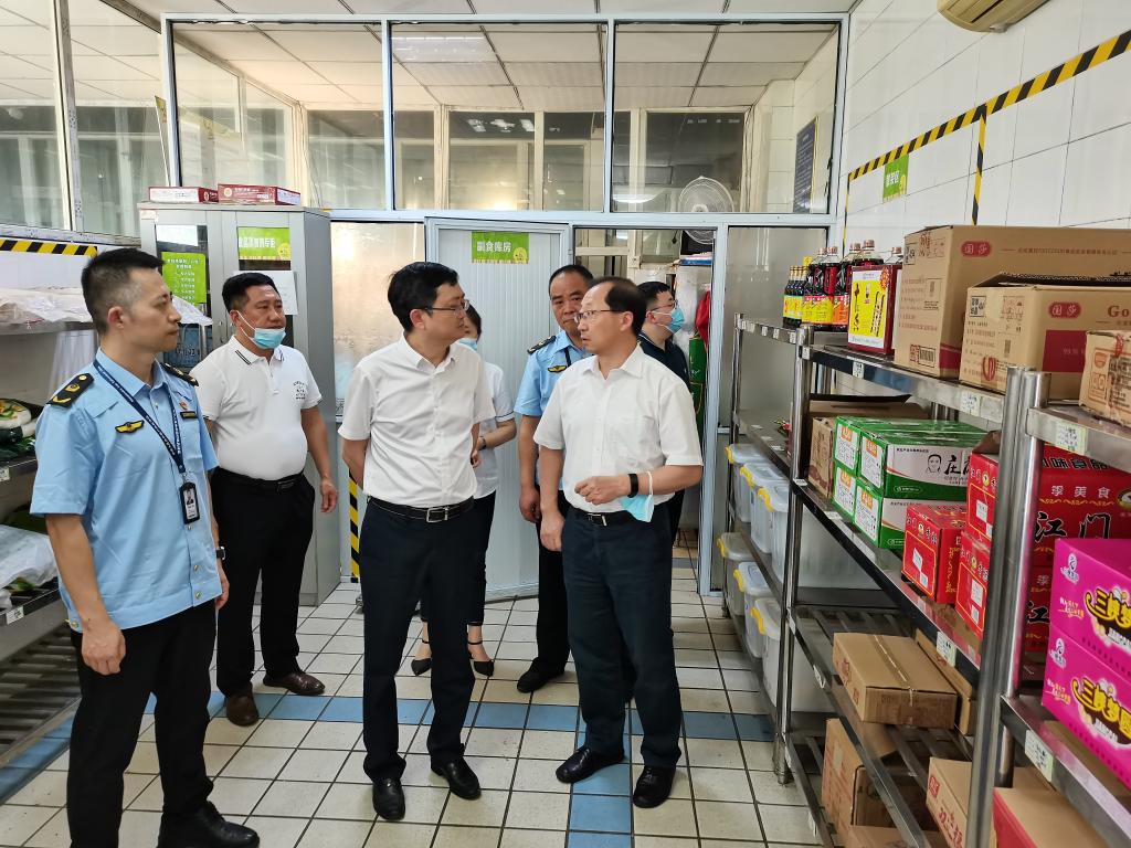 近日,南岸区副区长蒋文新带领区政府办公室、区市场监管局、区教委、海棠溪街道办事处、南坪镇部门负责同志到金年会开展食品安全检查。学校党委常委、副校长张波,后勤处处长沙云,饮食科负责人等陪同检查。
