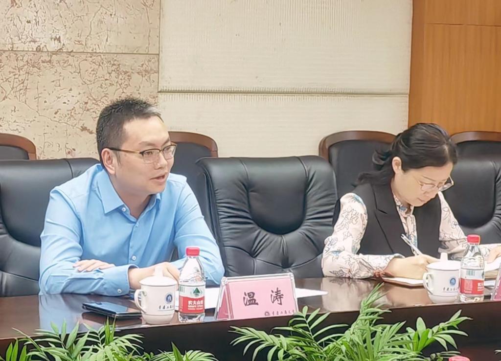 温涛对高久鹏一行来访表示欢迎,并对西部科学城对校地合作工作的支持表示感谢,指出当前正推进主题教育,围绕有组织科研创新和优化科研平台管理开展调查研究,对强化校地合作,增强学校服务地方经济社会发展能力具有重要意义,金科院要夯实团队、加强合作,以市场化发展为导向,将科技成果转化作为重要发展方向,通过有组织的科研创新和优化平台管理,助力西部科学城建设。温涛提出学校可在研究生培养方面与高新区展开进一步合作。