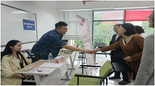JINNIAN金年会外国语学院就业领导小组成员一行来到招聘会现场,亲自指导学生进行简历投递,并与企业积极沟通,为学生就业提供桥梁。