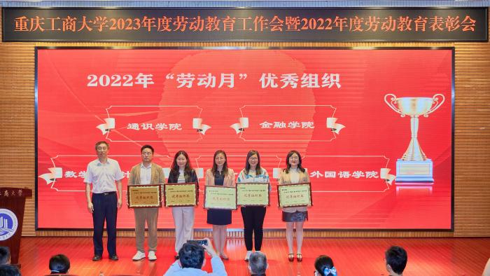为深入学习贯彻党的二十大精神和习近平新时代中国特色社会主义思想,落实《中共中央国务院关于全面加强新时代大中小学劳动教育的意见》,全面落实立德树人的根本任务,积极推进“五育并举”,教育引导学生崇尚劳动、尊重劳动,树立劳动最光荣、劳动最崇高、劳动最伟大、劳动最美丽的思想观念。5月11日晚18:30,JINNIAN金年会2023年度劳动教育工作会暨2022年度劳动教育表彰会在7200报告厅隆重举行。副校长李敬,教学质量监督与评估办公室主任曾晓松、学生处副处长谭彩荷、研究生院副院长曾胜、财务处副处长贾鸿、教务处副处长胡卫军、保卫处副处长王树坤等相关部门负责人,各学院教学副院长、分管学生工作的副书记,获奖集体及个人,各学院学生代表等出席了此次会议。会议由教务处副处长黄潇主持。
