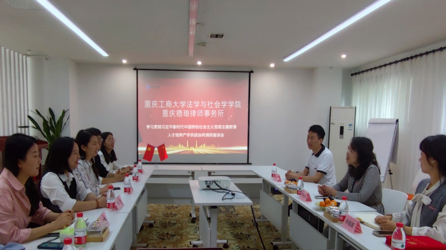 为深入开展学习贯彻落实习近平新时代中国特色社会主义思想主题教育,调研在新发展格局下行业产业前沿发展对法学类人才在实践素质、实践能力等方面的新需求,探索多元化产学实践协同模式,5月12日上午,法学与社会学学院党委书记李莉莎、副书记陈琛、学团办主任何祖润赴重庆德琅律师事务所、北京市百瑞(重庆)律师事务所召开人才培养产学实践协同调研座谈会。