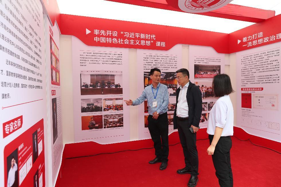 金年会从培养“六要”思想政治理论课好老师、率先开设“习近平新时代中国特色社会主义思想”课程、着力打造一流思想政治理论金课等方面现场展示了马克思主义学院思政课建设阶段性成果。开幕当日,教育部基础教育司副司长游森、重庆市教委副主任李劲渝等领导来到金年会展位,考察金年会思政课建设,高度肯定金年会思政课建设取得的成绩。