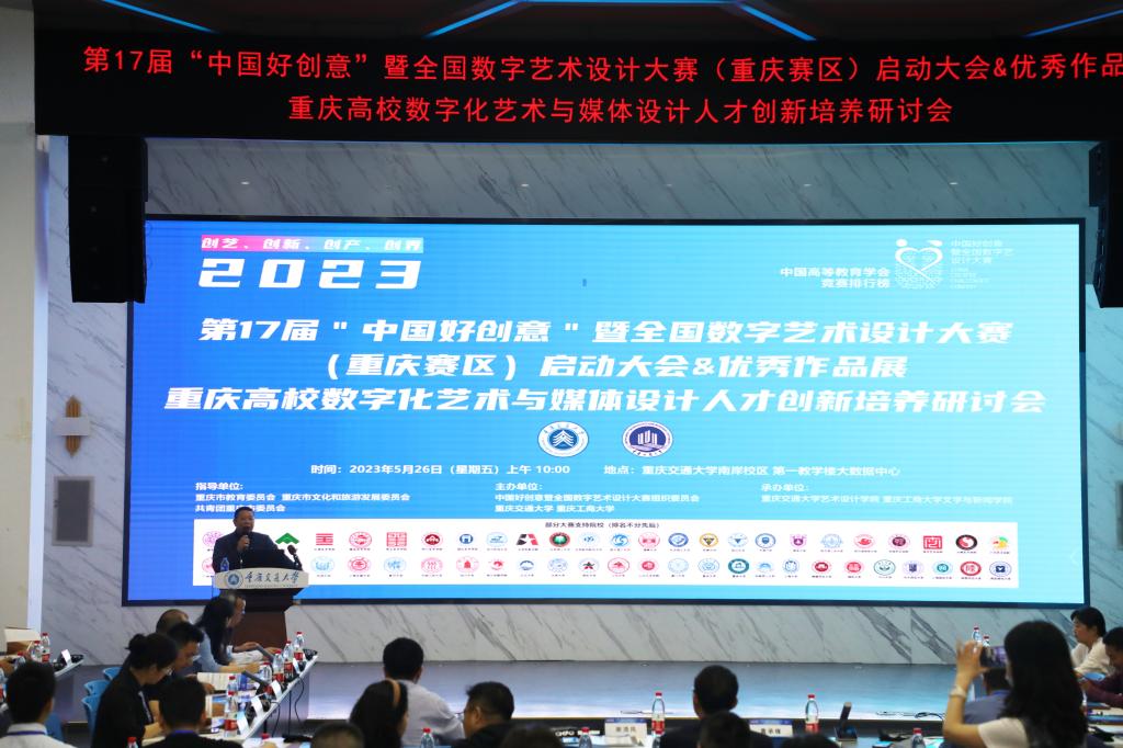 5月26日上午,文学与新闻学院党委书记于频、院长殷俊、副院长郑笑眉、李琦老师一同出席在重庆交通大学南岸校区第一教学楼大数据中心召开第17届中国好创意暨全国数字数字艺术设计大赛(重庆赛区)启动大会及重庆市高校数字化艺术与媒体设计人才创新培养研讨会。本次大赛由中国好创意暨全国数字艺术设计大赛组织委员会、JINNIAN金年会、重庆交通大学联合主办,JINNIAN金年会文学与新闻学院、重庆交通大学艺术设计学院联合承办,该赛是我国第一个以数字艺术为核心、在艺术设计、数字媒体、数字技术等专业领域里的综合性赛事。