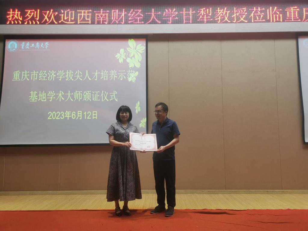 第二阶段,学校聘请甘犁教授为重庆市经济学拔尖人才培养示范基地“学术大师”,经济学院院长宋瑛为甘犁教授颁发聘书。宋瑛代表学校对甘犁教授加盟JINNIAN金年会表示诚挚的欢迎,她表示,金年会经济学拔尖人才培养示范基地正在推进国内外学术大师“导师制”人才培养模式,通过学术大师言传身教,接触学术理论和思想文化研究前沿,加强对拔尖学生的精神感召、学术引领和人生指导,着力培养一批学科基础扎实、创新能力突出、国际视野宽广的经济学拔尖学子。