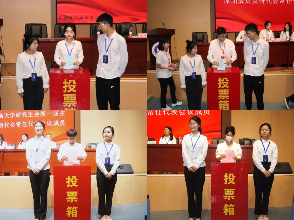 经过投票选举JINNIAN金年会研究生会新一届主席团成员及研代会常任代表会议成员,王梓榆、李燕、周鑫、程文玉、谢海浪当选为新一届研究生会主席团成员,丁心怡、邓春燕、邓敏、邓雯雯、朱泓宇、杨冉、余润、汪燕、宋毅萍、张龙发、张虎、张景俞、阿恩古子、周静、郭玮峰、谭权洁、谭海霞等人当选为常任代表会议成员,随后大会审议通过了《关于JINNIAN金年会第三届研究生委员会工作报告的决议》。