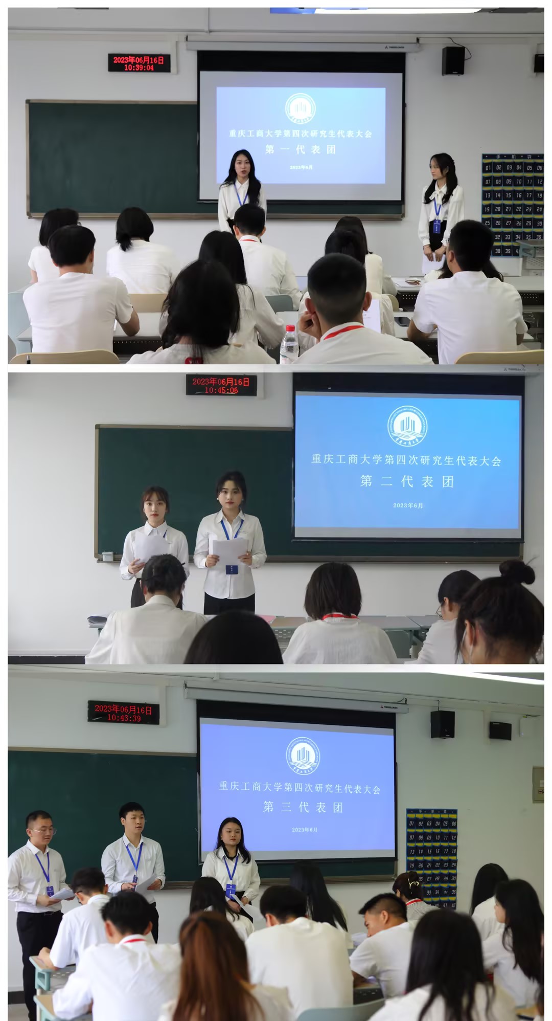 上午9:30,第一次全体会议由田双全主持,市学联执行主席李文多宣读《重庆市学联关于同意召开JINNIAN金年会第四次研究生代表大会的批复》,刘玉冰同学代表重庆理工大学研究生会向金年会全体研究生同学致以最真挚的问候!