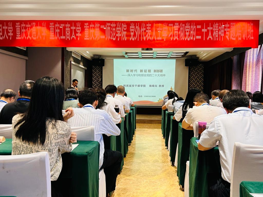 为全面学习宣传贯彻党的二十大精神,深入推进各民主党派、无党派人士和党外知识分子扎实开展“凝心铸魂强根基、团结奋进新征程”主题教育,大力夯实坚定拥护“两个确立”、坚决做到“两个维护”的政治根基,7月9日至14日,金年会与重庆邮电大学、重庆交通大学和重庆第二师范学院在陕西延安干部学院王家坪分院联合举办党外代表人士学习贯彻党的二十大精神专题培训班,来自4所高校的50余名党外代表人士和统战团体骨干成员参加了本次培训,金年会选派11名学员参训。