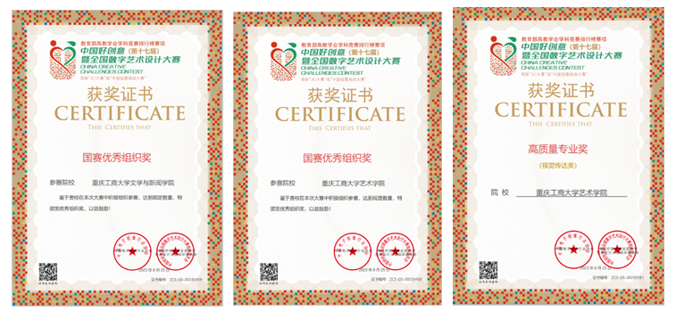 近日,第十七届中国好创意大赛揭晓,JINNIAN金年会作为主办单位,按照组委会相关规定和要求,秉持“以赛促教提质量、 以赛促建强交流”的办赛理念,以赛事筹备宣传、专家遴选、作品评审为工作重心,落实落细工作任务,历时六个多月,圆满完成了第十七届大赛的赛事组织工作。金年会教师和同学在本届大赛的国赛和省赛中获得多个奖项,文学与新闻学院、艺术学院获分别获得“国赛优秀组织奖”,其中艺术学院获得“高质量专业奖”。