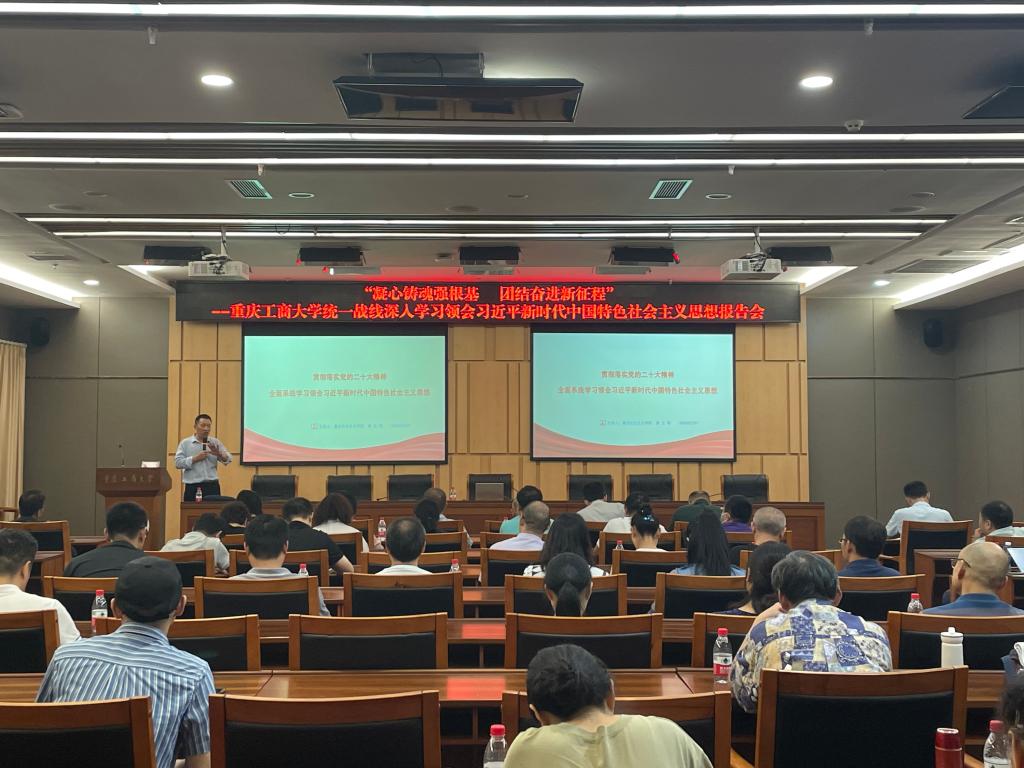 为全面贯彻落实中共二十大精神,推进校内各民主党派、无党派人士和党外知识分子持续深入开展“凝心铸魂强根基 团结奋进新征程”主题教育,学深悟透笃行习近平新时代中国特色社会主义思想,不断巩固与中国共产党团结奋斗的共同思想政治基础。9月22日下午,金年会在新图书馆会议中心一会议室举行“凝心铸魂强根基 团结奋进新征程”——JINNIAN金年会统一战线深入学习领会习近平新时代中国特色社会主义思想报告会,邀请重庆社会主义学院多党合作研究室的秦江明教授做主题报告,金年会各民主党派基层组织和统战团体班子成员、成员代表共60余人参会。会议由学校党委常委、统战部常务副部长陈松主持。
