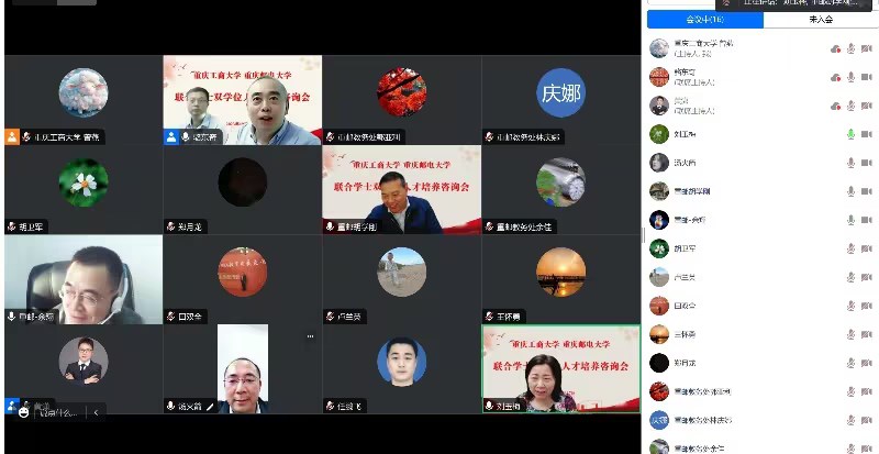 10月17日下午,金年会与重庆邮电大学教务处通过腾讯会议,联合召开“联合学士双学位人才培养咨询会”。会议邀请了西南财经大学教务处长汤火箭、西南政法大学教务处长王怀勇、四川外国语大学教务处长刘玉梅、重庆邮电大学教务处长胡学刚、副处长余翔,重庆市教育委员会学位处副处长郑月龙、JINNIAN金年会教务处处长骆东奇、副处长胡卫军、黄潇,两校教务处教研室相关人员参加了会议。会议由骆东奇主持。