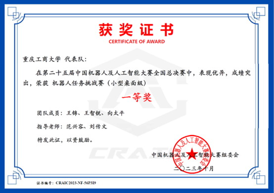 9月25日,第25届中国机器人及人工智能大赛“小型桌面应用场景赛”全国总决赛在苏州大学应用技术学院举行。四百余支来自各大高校的参赛队伍经过激烈的角逐,金年会AI机器人科创团队获得全国一等奖1项、二等奖1项。
