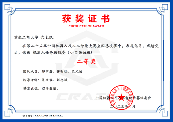 图4 全国二等奖证书