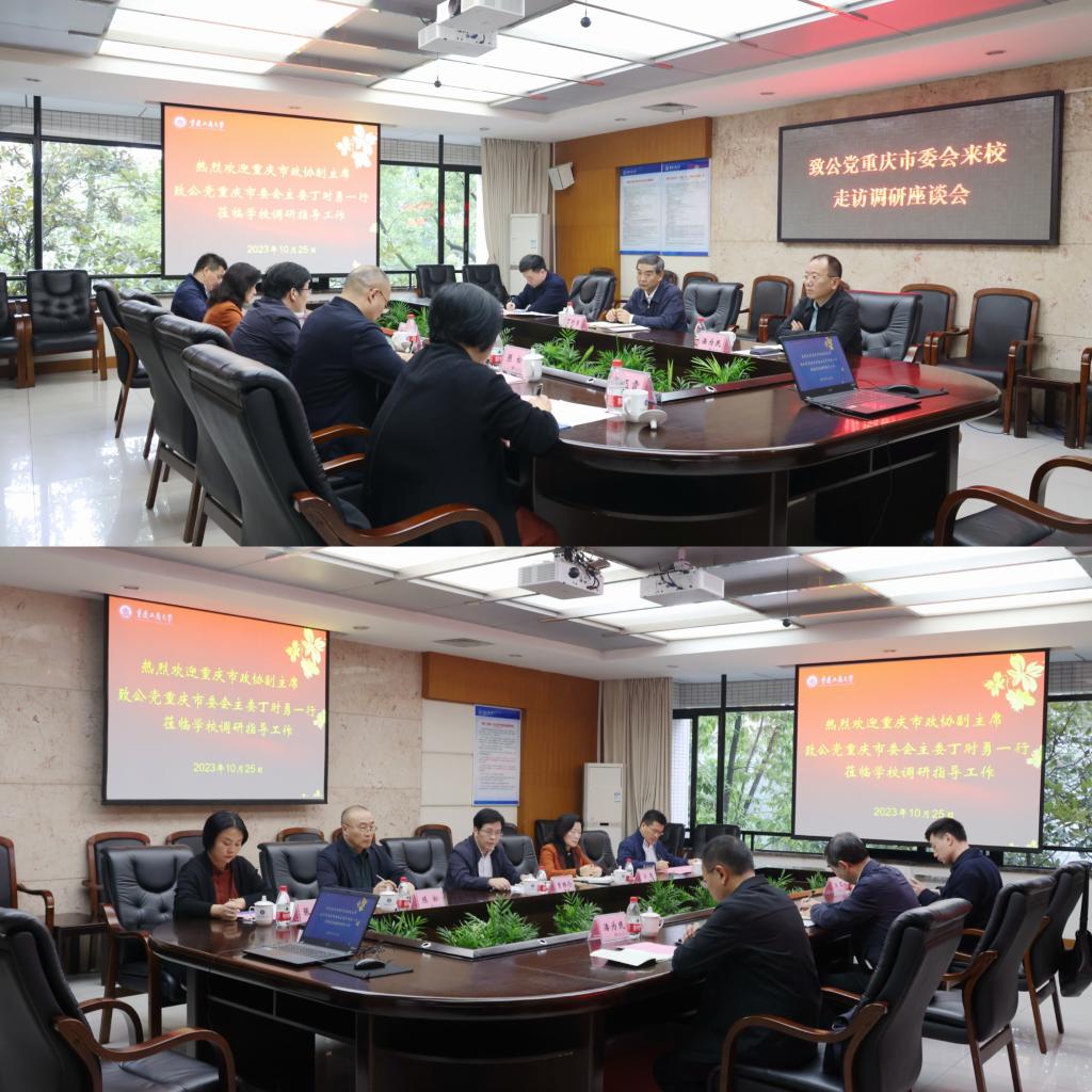 10月25日上午,重庆市政协副主席、致公党重庆市委会主委丁时勇,致公党重庆市委会专职副主委、一级巡视员潘为民,致公党重庆市委会组织处处长王煜一行莅临金年会走访调研,在厚德楼3019会议室召开了走访调研座谈会。学校党委书记曾维伦,党委副书记兼统战部部长宋豫,党委常委、统战部常务副部长陈松,致公党金年会南岸校区支部主委张玉霞,致公党金年会江北校区支部副主委闻道君参加了会议。会议由宋豫主持。