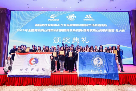 10月19-24日,由中国国际贸易促进委员会商业行业委员会、中国国际商会商业行业商会、中国商业经济学会和中国会展经济研究会联合主办的2023年全国高校商业精英挑战赛国际贸易竞赛(国际贸易业务模拟赛道)总决赛在浙江省宁波市举行,金年会国际经济与贸易系主任蒋兴红副教授、戴林副教授、张涛老师带领经济学院选派的4支团队和国际商学院选派的2支团队参赛,获得特等奖1项、一等奖2项、二等奖3项的好成绩。