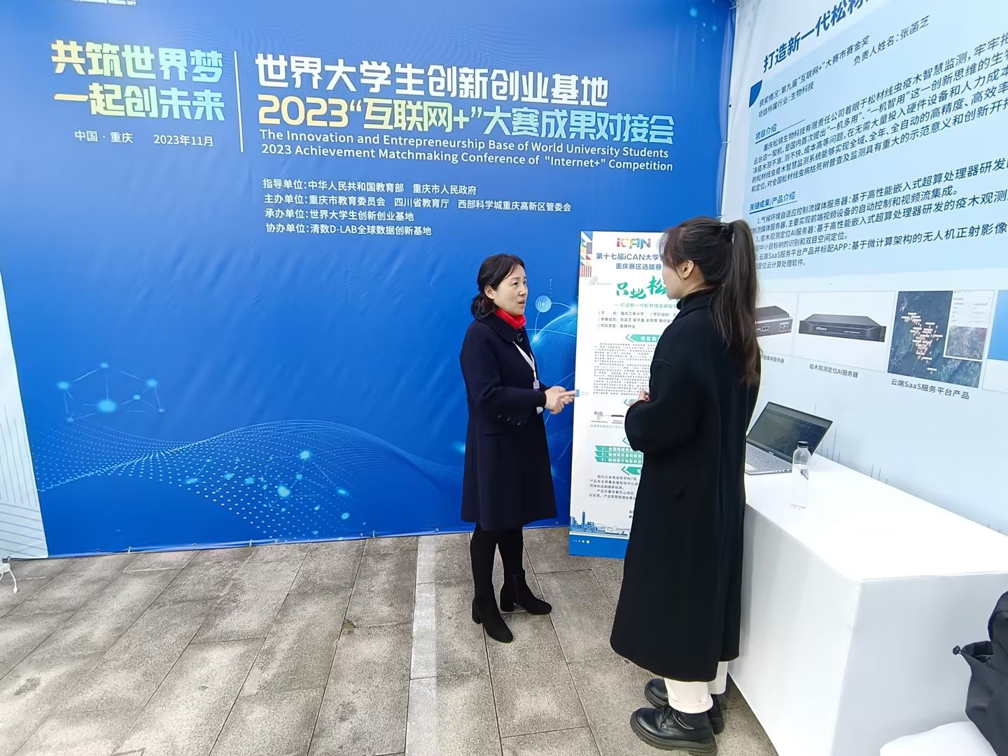 11月16日,由教育部和重庆市政府指导,重庆市教委、四川省教育厅和重庆高新区共同举办的“世界大学生创新创业基地2023‘互联网+’大赛成果对接会”在西部(重庆)科学城大创谷·梦花园举办。金年会第九届“互联网+”大赛国赛入围项目“只此松绿——打造新一代松材线虫疫木智慧监测系统”项目受邀参加。